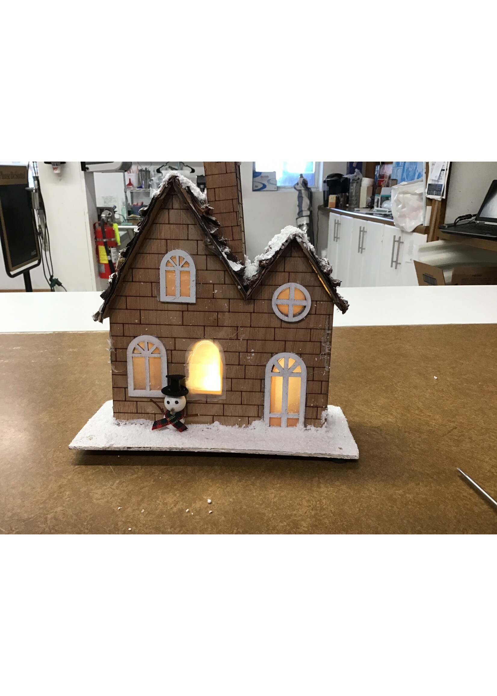 *Missing 2 feet and window pane and slightly damaged* Light up Winter House With Snowman